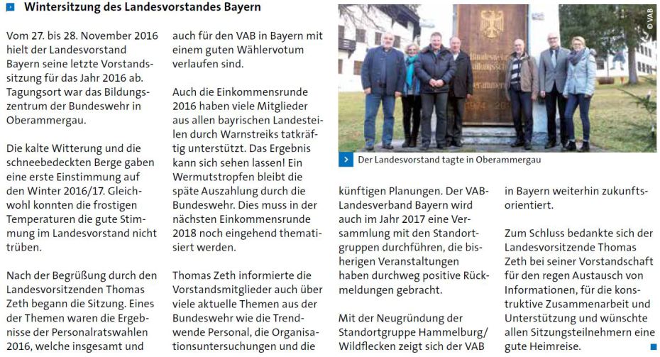 Vom 26. bis 27. März 2018 hielt der Landesverband seine Sitzung mit den Standortgruppenvorsitzenden und Delelegierten der Standorgruppen mit Neuwahl des Vorstandes in Oberammergau ab.